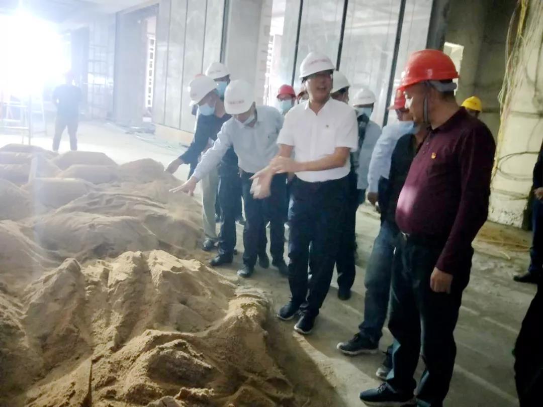 2020年10月27日下午,寧德市市委常委、秘書長陳其春,市住建局總工程師何飛,市住建局工程科科長肖清弟,市住建局質(zhì)安站負責人劉雪梅一行蒞臨我司監(jiān)理的三都澳大酒店二期項目調(diào)研,實地察看項目建設進展情況。市國投公司董事長江明融、工會主席章華周,寧德市三都澳大酒店有限公司董事長林清團、總經(jīng)理蘇春富、常務副總經(jīng)理陶勇,我司總工兼寧德分公司經(jīng)理、項目總監(jiān)徐禮盛及項目部人員陪同調(diào)研。