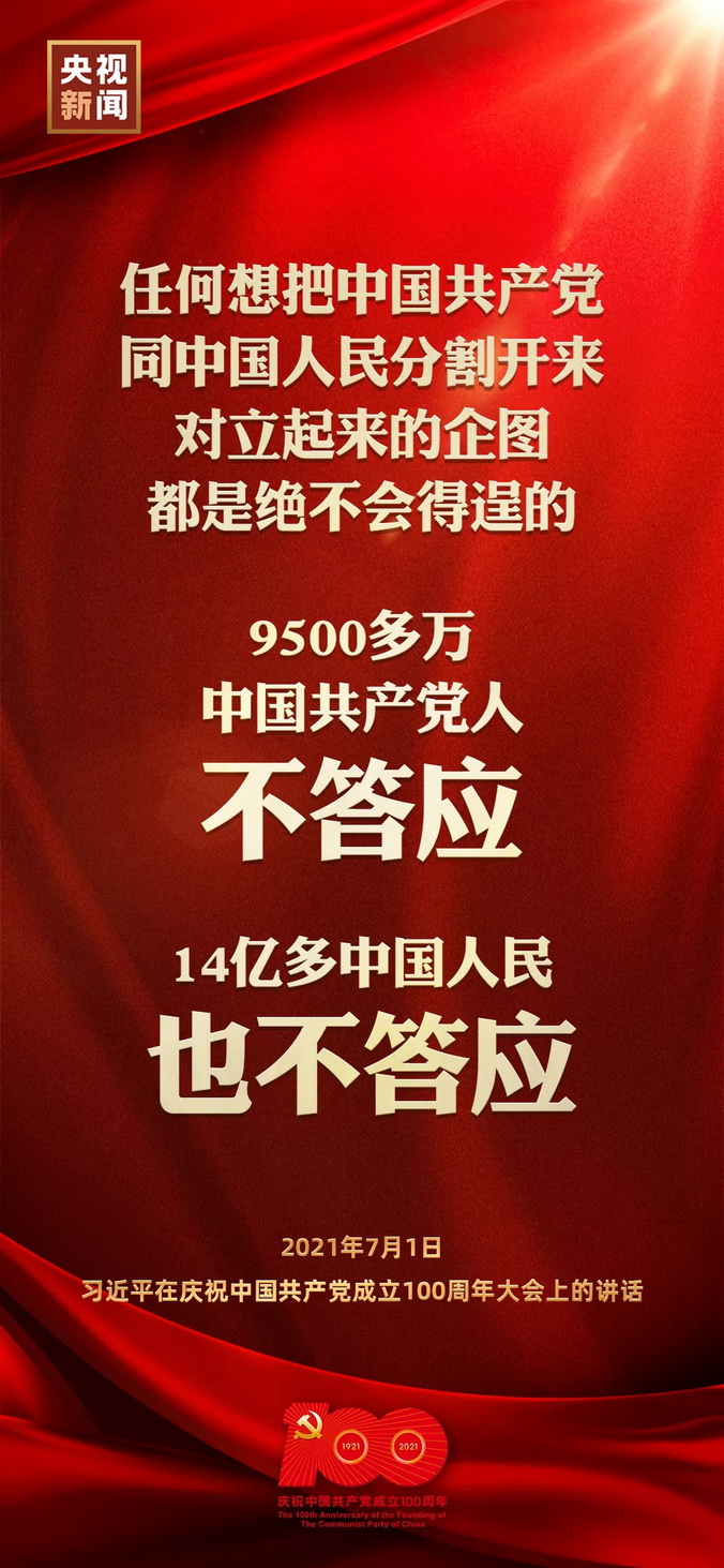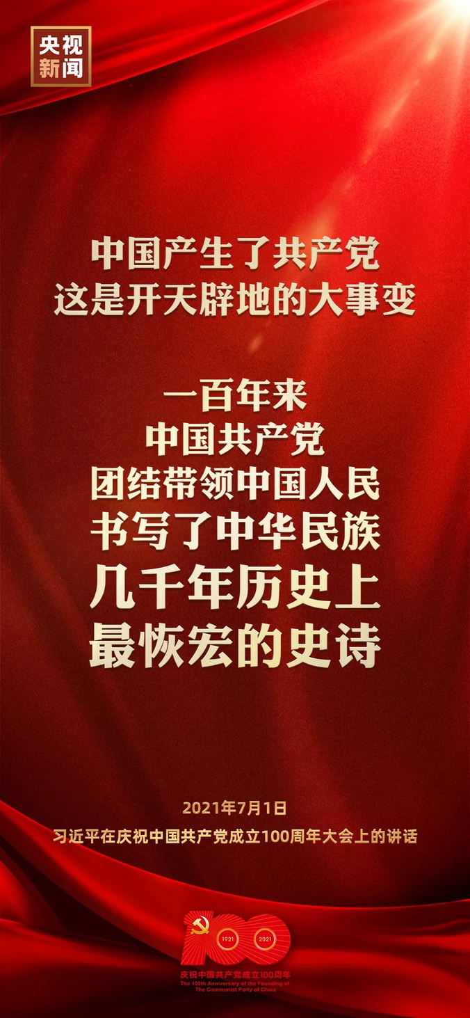 今天,慶祝中國共產(chǎn)黨成立100周年大會(huì)在北京天安門廣場隆重舉行,中共中央總書記、國家主席、中央軍委主席習(xí)近平發(fā)表重要講話。
