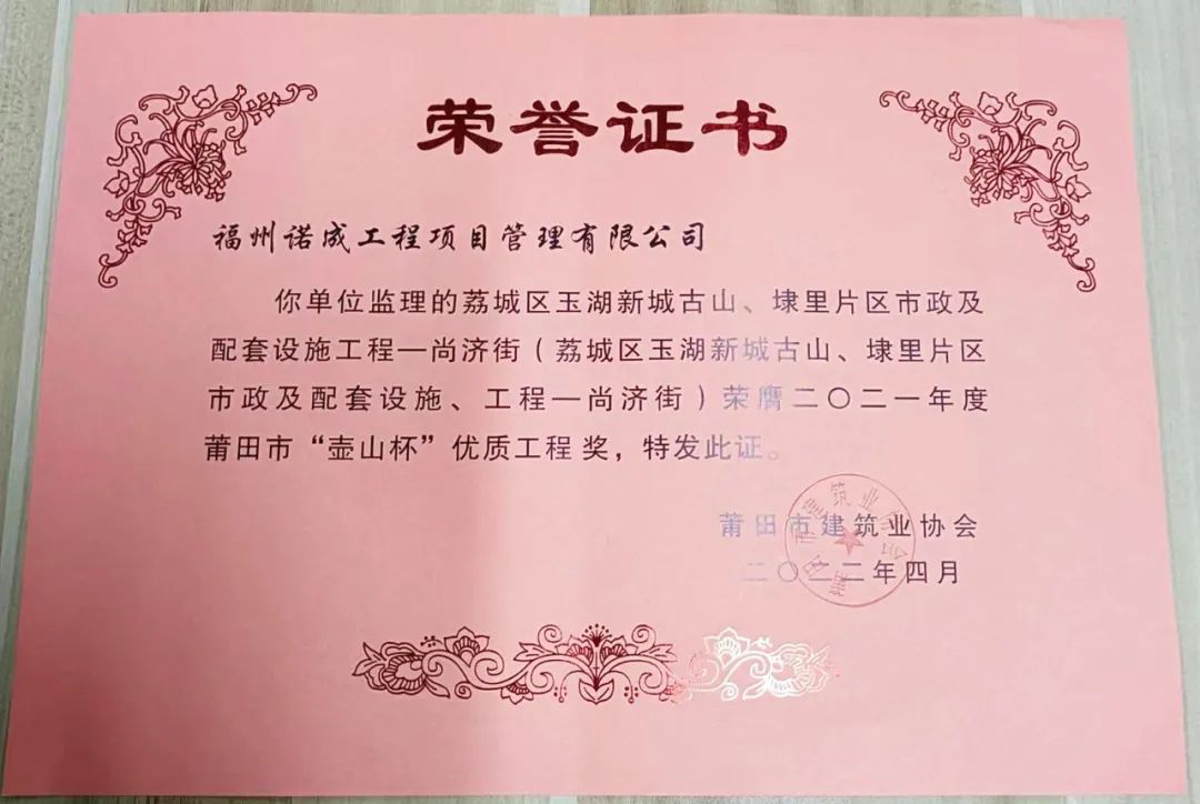 榮獲2021年度莆田市“壺山杯”優(yōu)質(zhì)工程獎(jiǎng)!